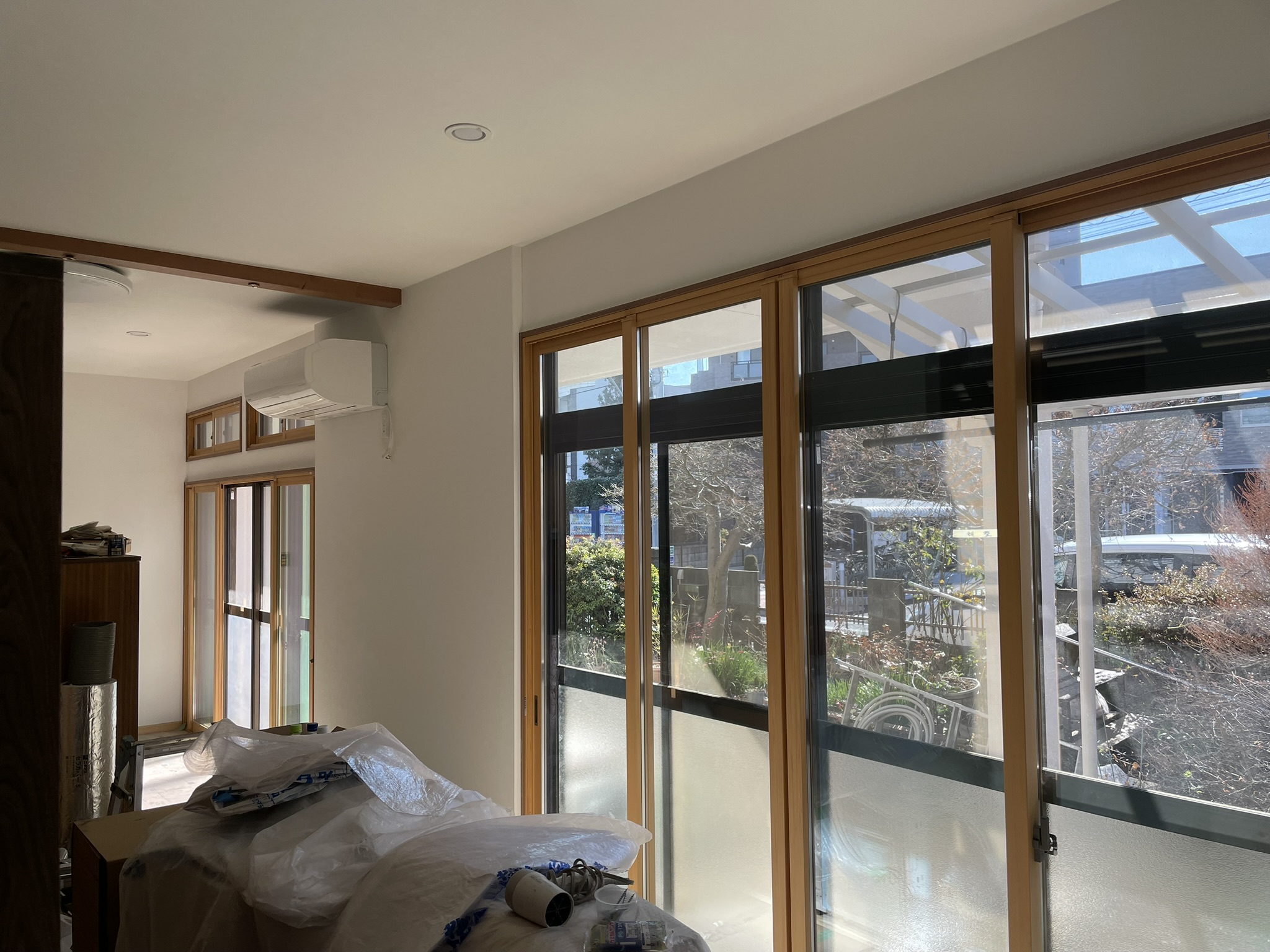 高窓から差し込むやわらかな光と、木の床の温もりが重なり合い、どこか懐かしくも新しい空間が完成しました。